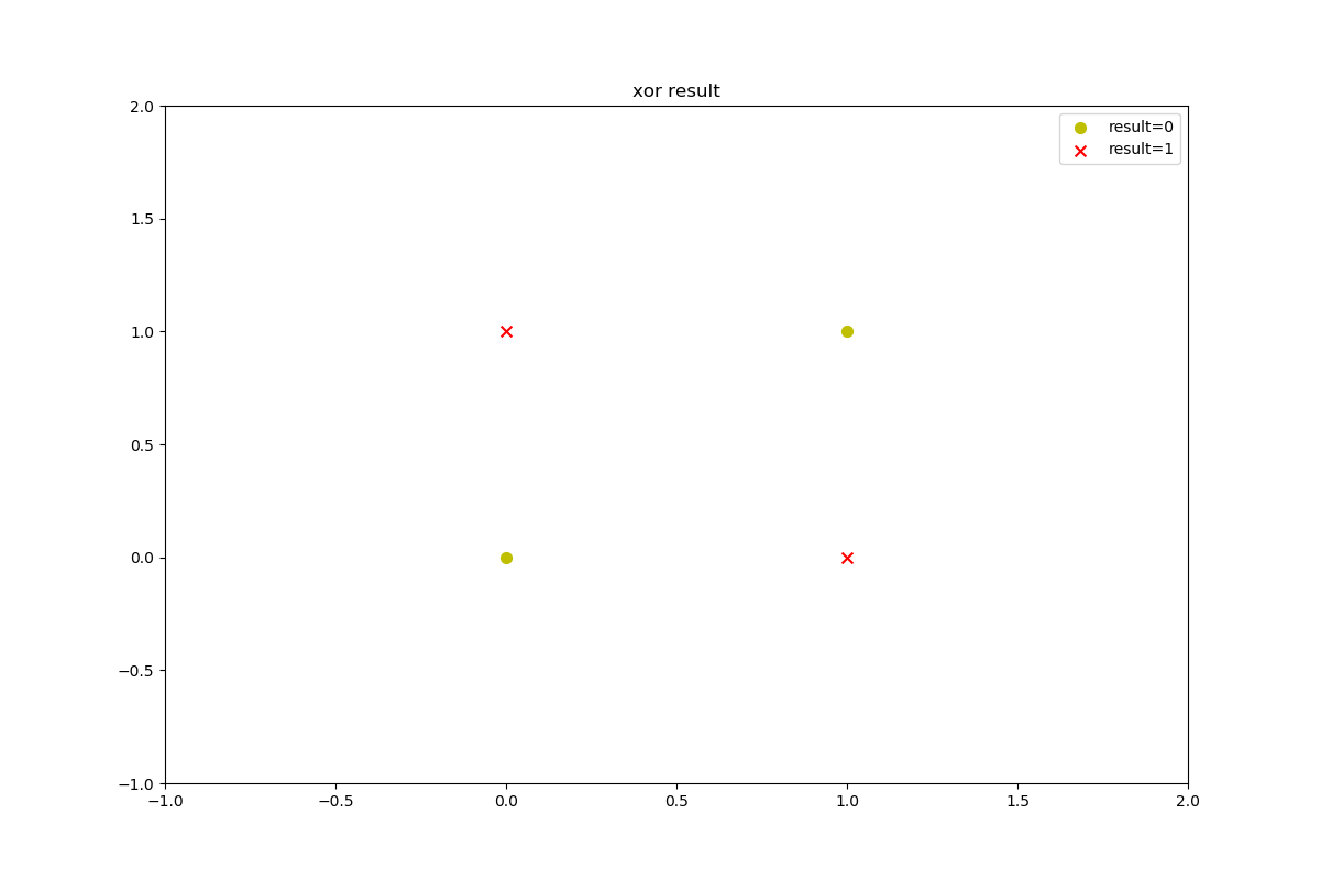 感知器算法可以解决and or这种线性可分的问题,但是对于异或问题,就无力了,而两层感知器就可以做到: