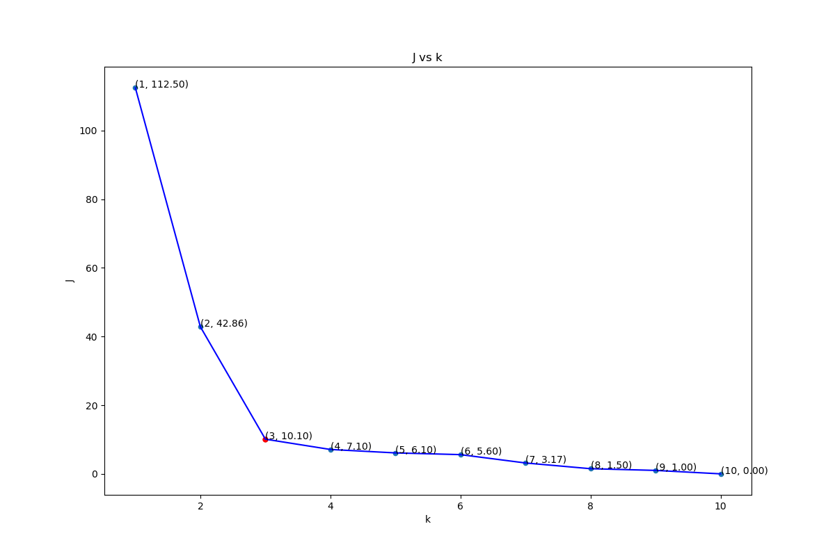 下面是取不同k值的j的变化.这里的J是距离平方的和